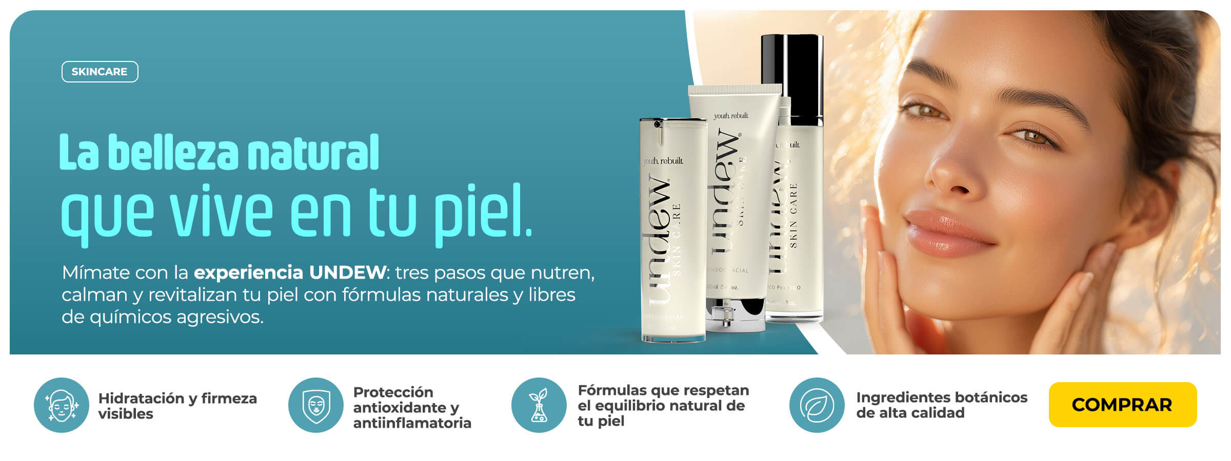 Piel increíble, rutina simple. Limpia, tonifica y nutre tu rostro con nuestra línea pensada para ti. Combate los signos del tiempo y revela una piel luminosa, firme y radiante.